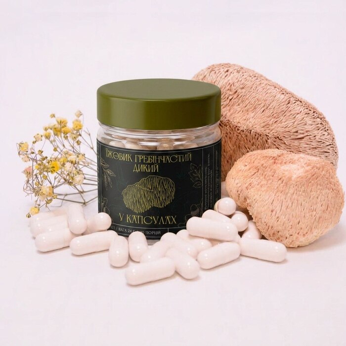 КАПСУЛИ ЇЖОВИКА ГРЕБІНЧАСТОГО (LION’S MANE) — НАТУРАЛЬНА ДОБАВКА У ЗРУЧНІЙ ФОРМІ